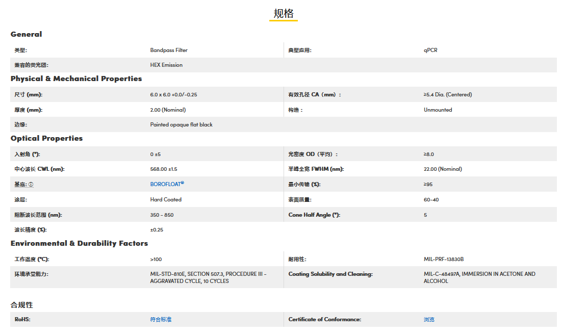 Edmund爱特蒙特 568nm CWL, 6x6mm, OD8 High Blocking Bandpass Filter 荧光带通滤光片 电话:0755-84670052 0755-83317701 手机/微信:13682357549 13246646513 QQ:672776553 564600083 1903656788 Email:672776553@qq.com 564600083@qq.com
