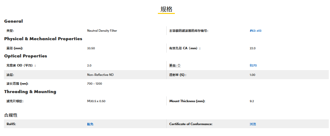 Edmund爱特蒙特 700-1200nm,光密度2.0, M30.5 x 0.5螺纹,非反射ND滤光 电话:0755-84670052 0755-83317701 手机/微信:13682357549 13246646513 QQ:672776553 564600083 1903656788 Email:672776553@qq.com 564600083@qq.com
