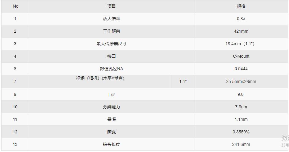 0.8× 1.1″长工作距离定倍镜头