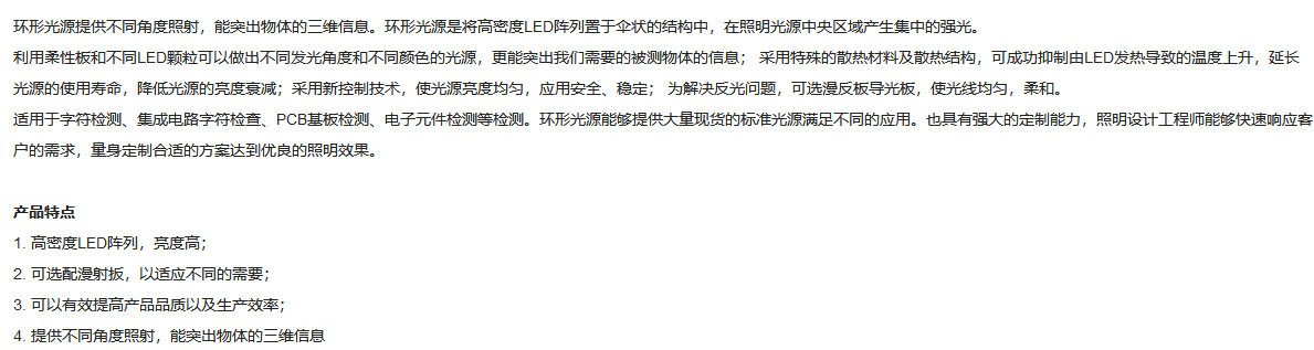 GRAND UNIFIED联合光科 工作距离25-45mm 45°角照射 白色环形光源