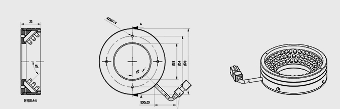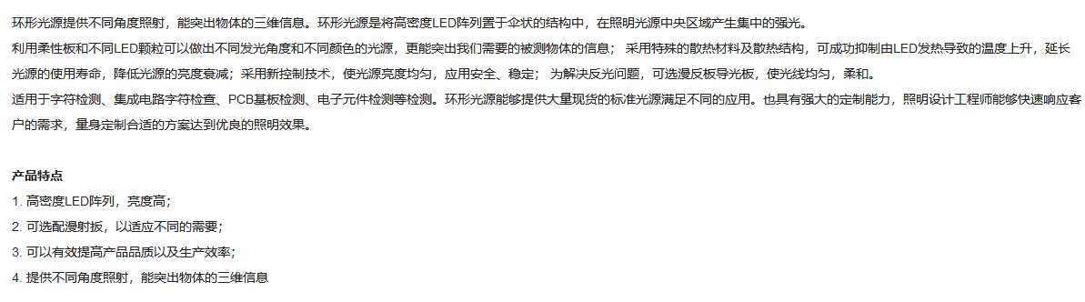 工作距离30-60mm 45°角照射 白色环形光源