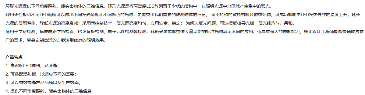 GRAND UNIFIED联合光科 工作距离60-180mm 45°角照射 白色环形光源