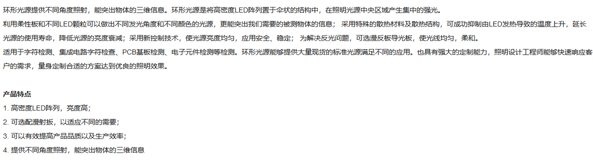 GRAND UNIFIED联合光科 工作距离65-160mm 30°角照射 白色环形光源