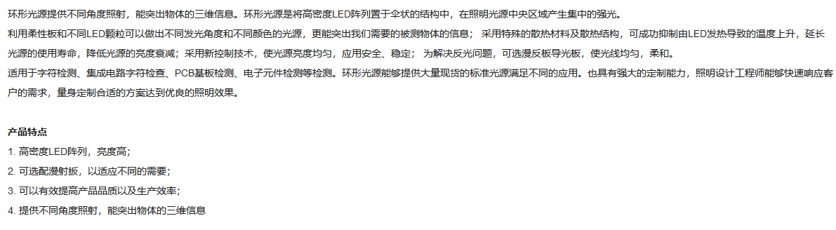 GRAND UNIFIED联合光科 工作距离30-60mm 45°角照射 红色环形光源