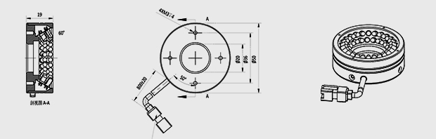 工作距离20-40mm 60°角照射 蓝色环形光源