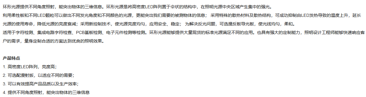 工作距离30-60mm 45°角照射 蓝色环形光源