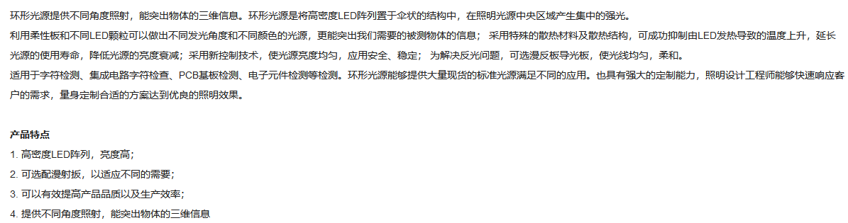 GRAND UNIFIED联合光科 工作距离35-80mm 45°角照射 绿色环形光源