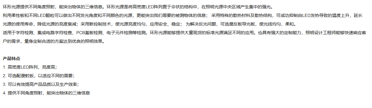 GRAND UNIFIED联合光科 工作距离15-20mm 特殊角度 白色环形光源
