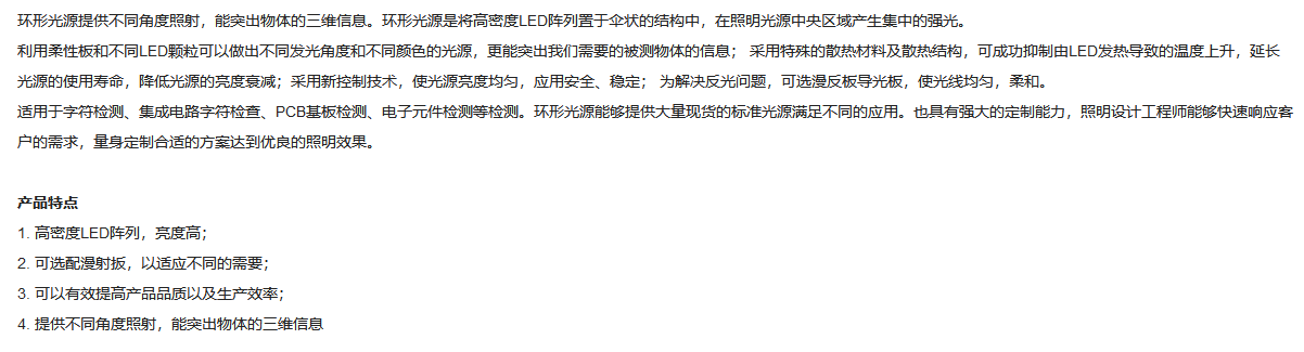 GRAND UNIFIED联合光科 工作距离25-55mm 60°角照射 白色环形光源