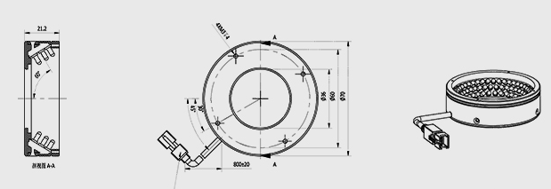 工作距离25-55mm 60°角照射 白色环形光源
