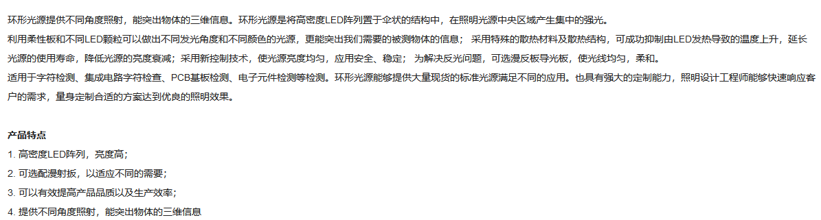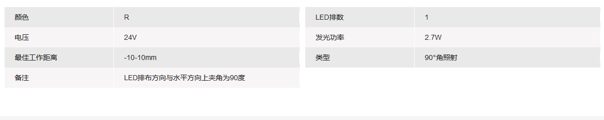 工作距离-10-10mm 90°角照射 红色环形光源
