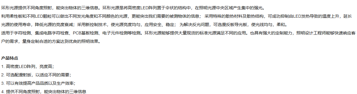 GRAND UNIFIED联合光科 工作距离20-50mm 特殊角度 红色环形光源