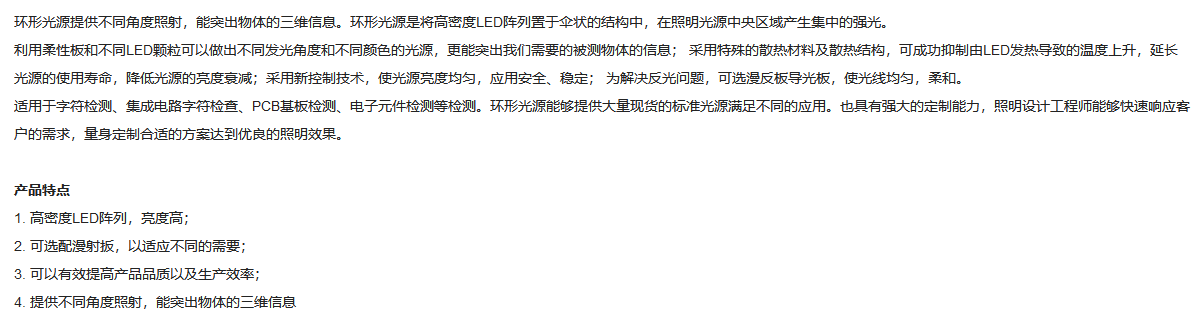 工作距离45-80mm 垂直照射 红色环形光源