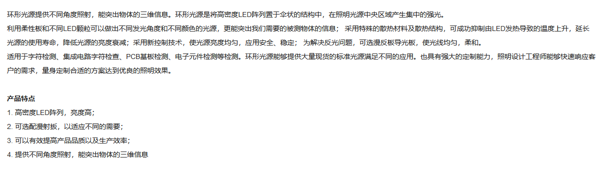 工作距离45-80mm 垂直照射 蓝色环形光源