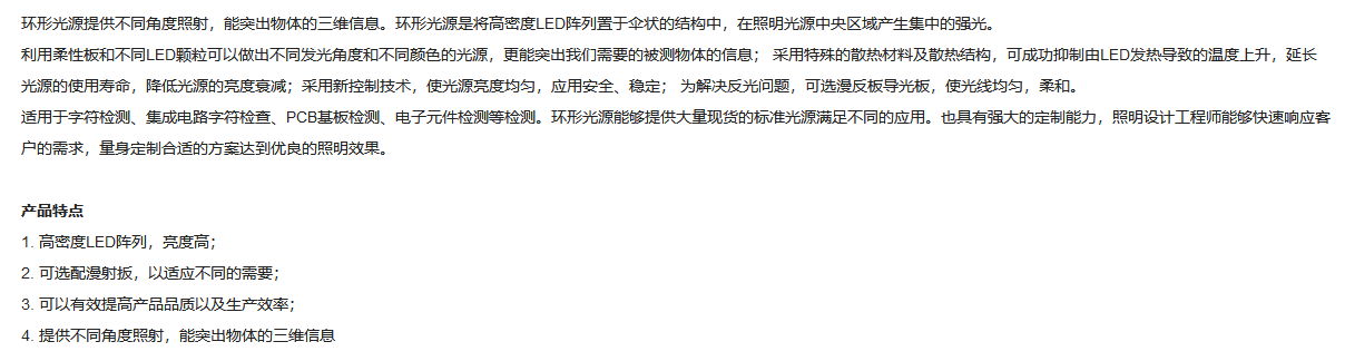 GRAND UNIFIED联合光科 工作距离30-80mm 60°角照射 绿色环形光源