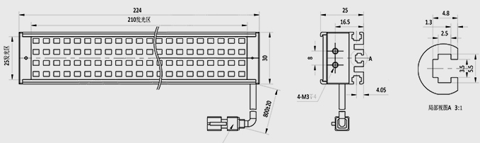 有效发光面 210x25mm 白色高均匀条形光源