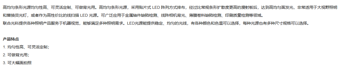 有效发光面 252x25mm 白色高均匀条形光源