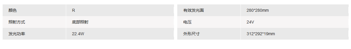有效发光面 280x280mm 红色底部背光源