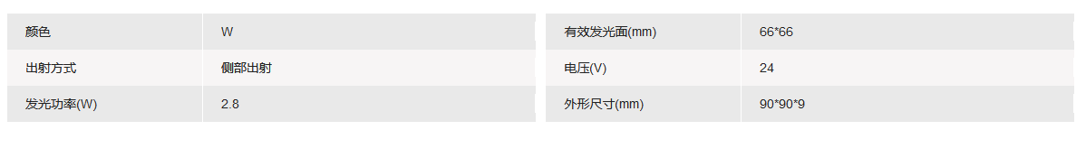 有效发光面 66x66mm 白色侧部背光源