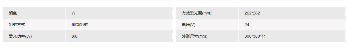 有效发光面 262x262mm 白色侧部背光源