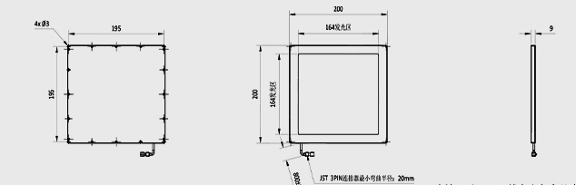 有效发光面 164x164mm 蓝色侧部背光源