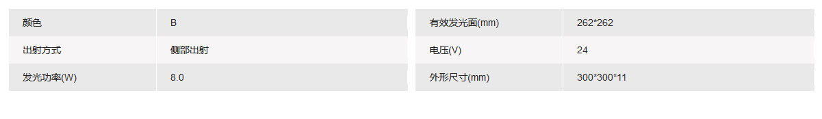 有效发光面 262x262mm 蓝色侧部背光源