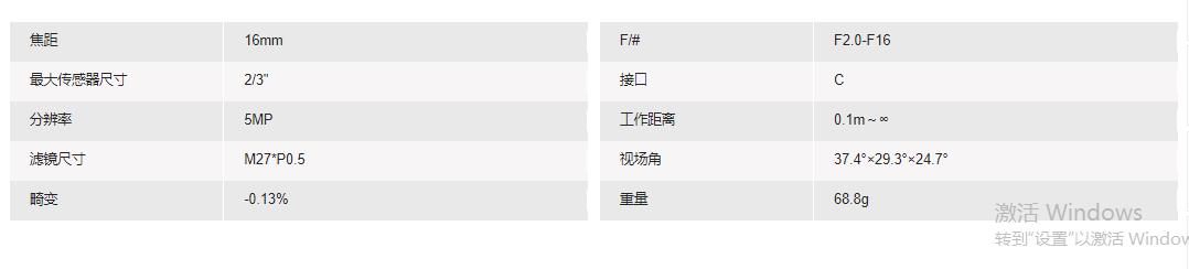 GRAND UNIFIED联合光科 16mm 23 F2.0 5M定焦镜头
