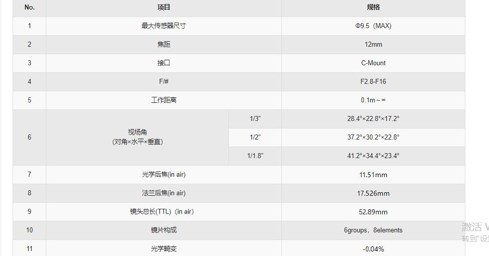 16mm 11.8 F2.8 6M定焦镜头