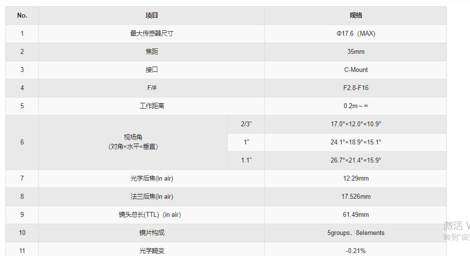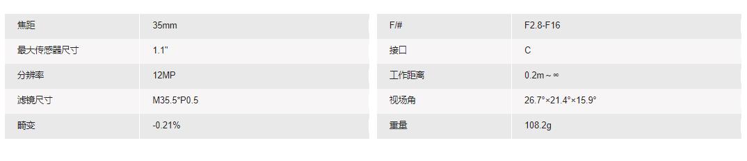 35mm 1.1 F2.8 12M定焦镜头