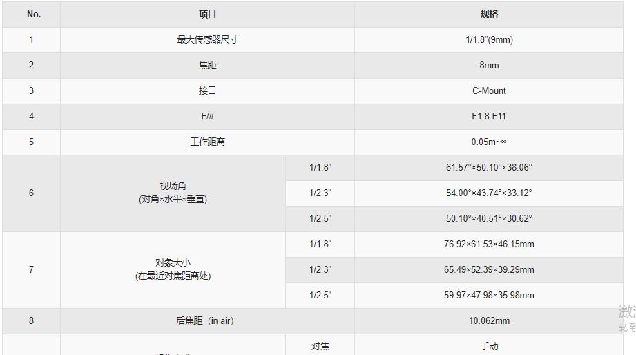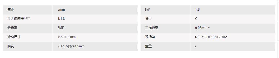 GRAND UNIFIED联合光科 8mm 11.8 6M 定焦镜头
