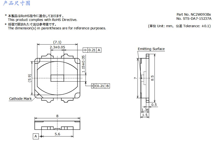 Nichia日亚 NC2W093B LED光源 电话:0755-84670052 0755-83317701 手机/微信:13682357549 13246646513 QQ:672776553 564600083 1903656788 Email:672776553@qq.com 564600083@qq.com