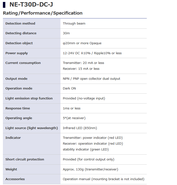 TAKEX竹中 NE-M5RD-DC-J NE-DC Series 长距离嵌入式光传感器