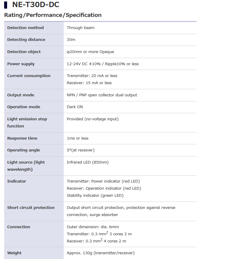 TAKEX竹中 NE-T30-DC NE-DC Series 长距离嵌入式光传感器 电话:0755-84670052 0755-83317701 手机/微信:13682357549 13246646513 QQ:672776553 564600083 1903656788 Email:672776553@qq.com 564600083@qq.com