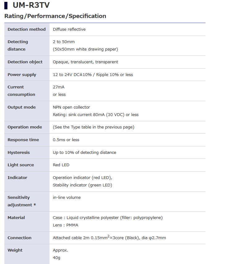 TAKEX竹中 UM-R3TV UM Series 超微型嵌入光传感器 电话:0755-84670052 0755-83317701 手机/微信:13682357549 13246646513 QQ:672776553 564600083 1903656788 Email:672776553@qq.com 564600083@qq.com
