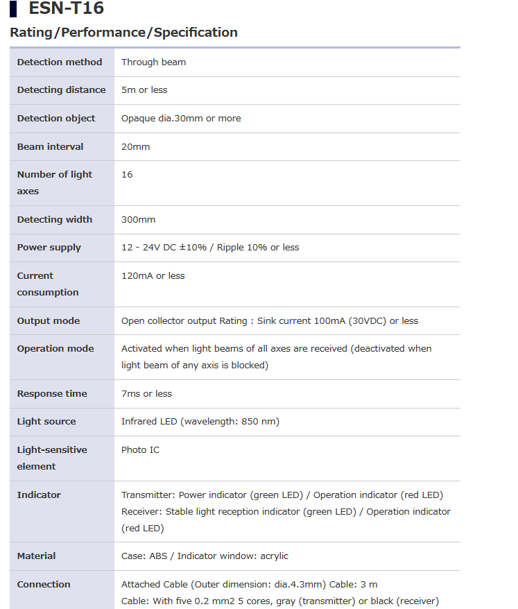 TAKEX竹中 ESN-T16 ESN Series 光幕传感器 电话:0755-84670052 0755-83317701 手机/微信:13682357549 13246646513 QQ:672776553 564600083 1903656788 Email:672776553@qq.com 564600083@qq.com