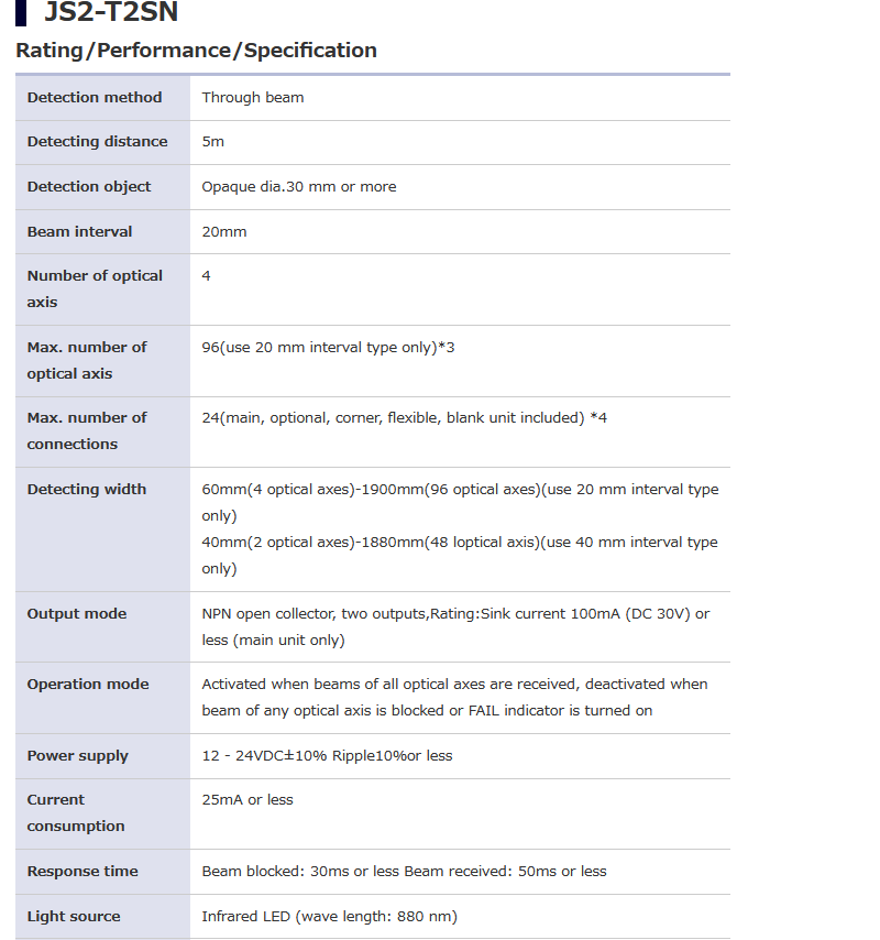 TAKEX竹中 JS2-T2SN JS2 Series 耦合式光幕传感器 电话:0755-84670052 0755-83317701 手机/微信:13682357549 13246646513 QQ:672776553 564600083 1903656788 Email:672776553@qq.com 564600083@qq.com