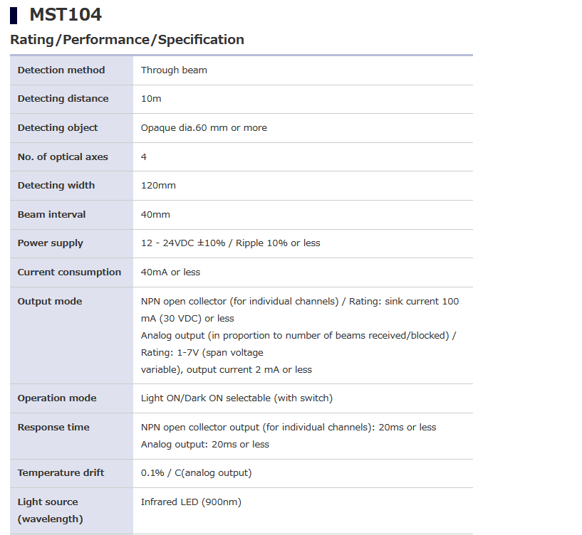 TAKEX竹中 MST104 MST Series 光幕传感器 电话:0755-84670052 0755-83317701 手机/微信:13682357549 13246646513 QQ:672776553 564600083 1903656788 Email:672776553@qq.com 564600083@qq.com