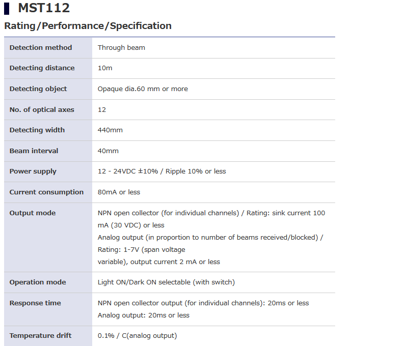 TAKEX竹中 MST112 MST Series 光幕传感器 电话:0755-84670052 0755-83317701 手机/微信:13682357549 13246646513 QQ:672776553 564600083 1903656788 Email:672776553@qq.com 564600083@qq.com