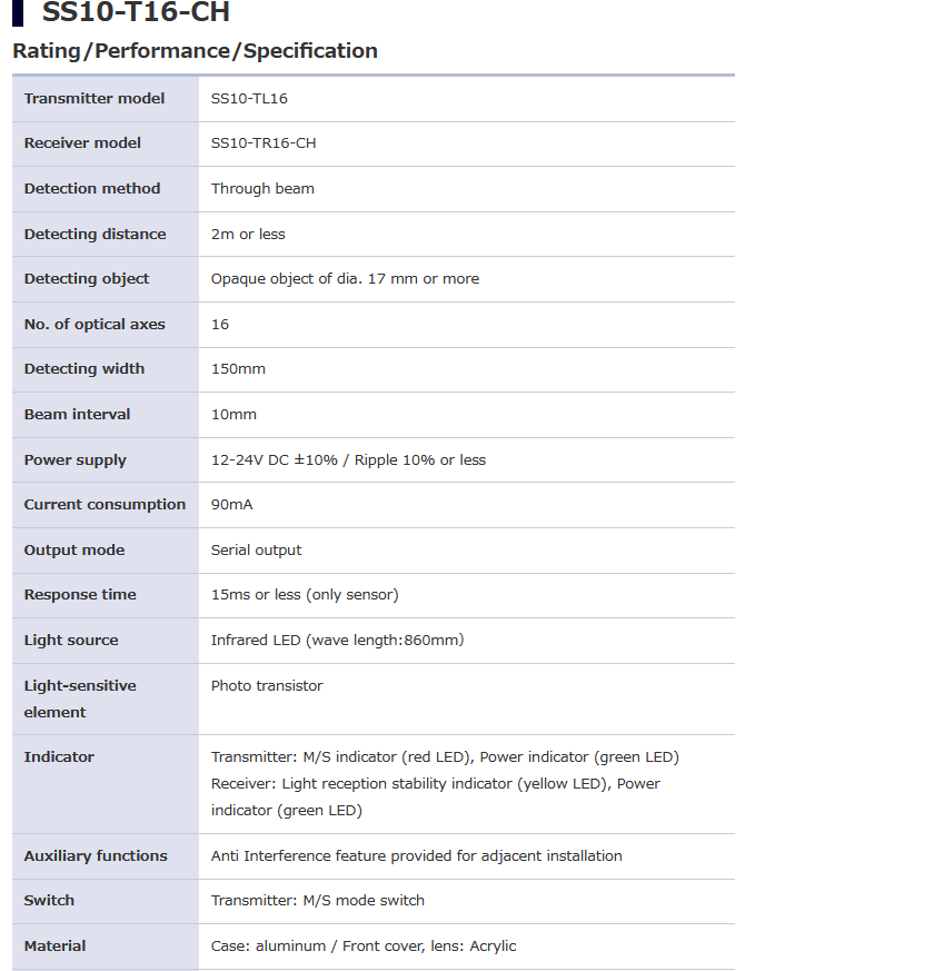 TAKEX竹中 SS10-T16-CH SS-CH Series 独立光轴输出光幕传感器 电话:0755-84670052 0755-83317701 手机/微信:13682357549 13246646513 QQ:672776553 564600083 1903656788 Email:672776553@qq.com 564600083@qq.com