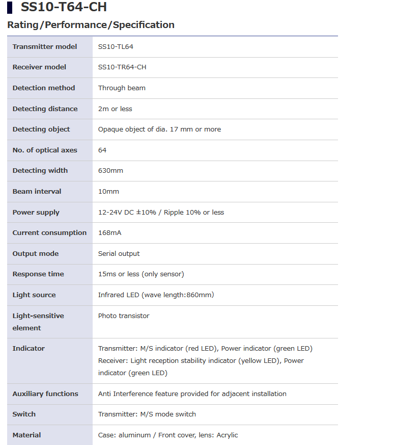 TAKEX竹中 SS10-T64-CH SS-CH Series 独立光轴输出光幕传感器 电话:0755-84670052 0755-83317701 手机/微信:13682357549 13246646513 QQ:672776553 564600083 1903656788 Email:672776553@qq.com 564600083@qq.com