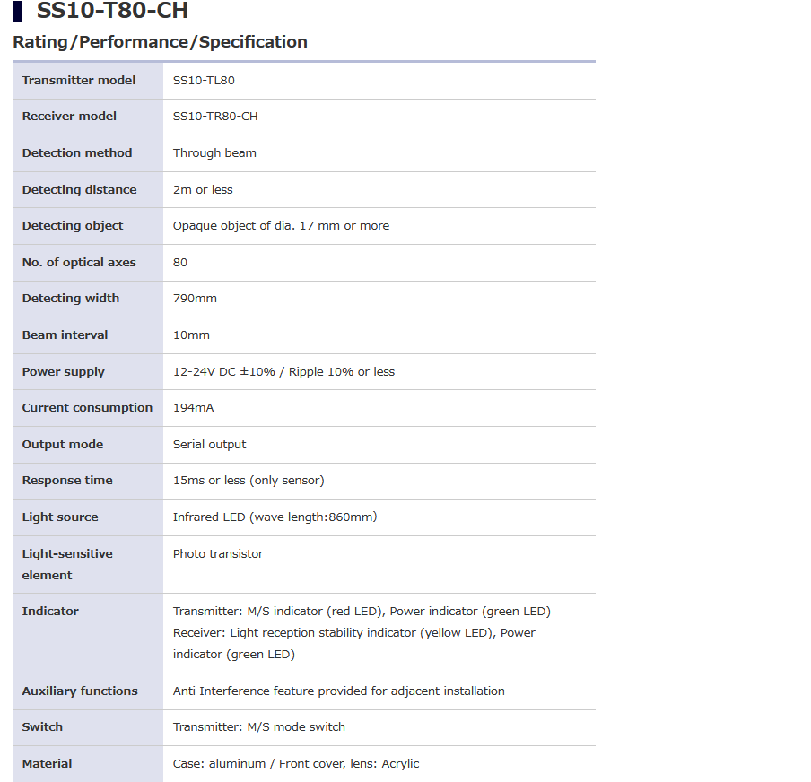 TAKEX竹中 SS10-T80-CH SS-CH Series 独立光轴输出光幕传感器 电话:0755-84670052 0755-83317701 手机/微信:13682357549 13246646513 QQ:672776553 564600083 1903656788 Email:672776553@qq.com 564600083@qq.com