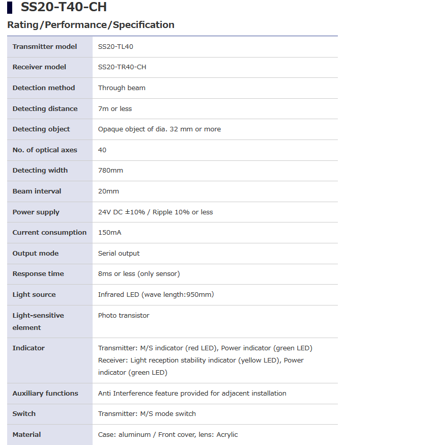 TAKEX竹中 SS20-T40-CH SS-CH Series 独立光轴输出光幕传感器 电话:0755-84670052 0755-83317701 手机/微信:13682357549 13246646513 QQ:672776553 564600083 1903656788 Email:672776553@qq.com 564600083@qq.com