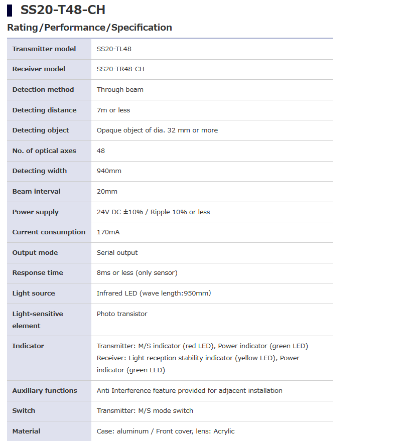 TAKEX竹中 SS20-T48-CH SS-CH Series 独立光轴输出光幕传感器 电话:0755-84670052 0755-83317701 手机/微信:13682357549 13246646513 QQ:672776553 564600083 1903656788 Email:672776553@qq.com 564600083@qq.com