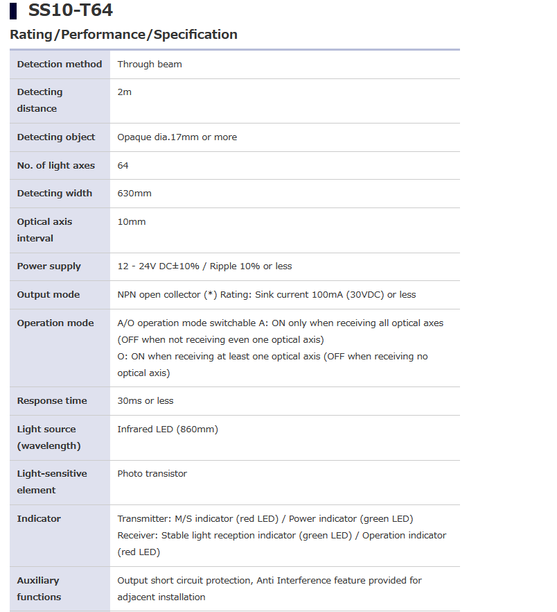 TAKEX竹中 SS10-T64 SS10 Series 超薄型光幕传感器 电话:0755-84670052 0755-83317701 手机/微信:13682357549 13246646513 QQ:672776553 564600083 1903656788 Email:672776553@qq.com 564600083@qq.com