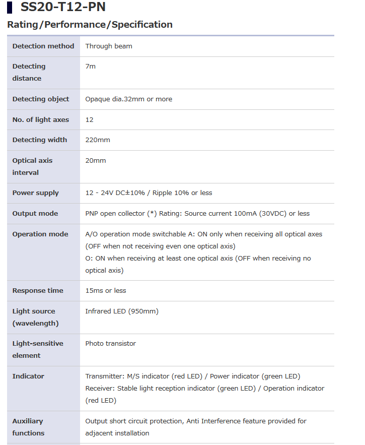 TAKEX竹中 SS20-T12-PN SS20 Series 超薄型光幕传感器 电话:0755-84670052 0755-83317701 手机/微信:13682357549 13246646513 QQ:672776553 564600083 1903656788 Email:672776553@qq.com 564600083@qq.com