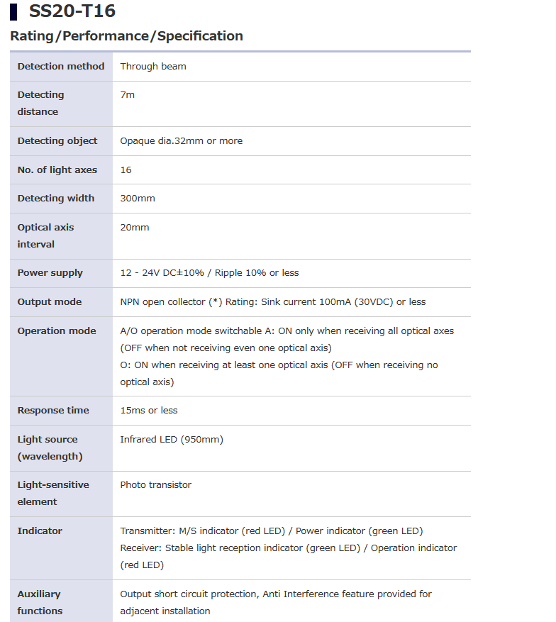 TAKEX竹中 SS20-T16 SS20 Series 超薄型光幕传感器 电话:0755-84670052 0755-83317701 手机/微信:13682357549 13246646513 QQ:672776553 564600083 1903656788 Email:672776553@qq.com 564600083@qq.com