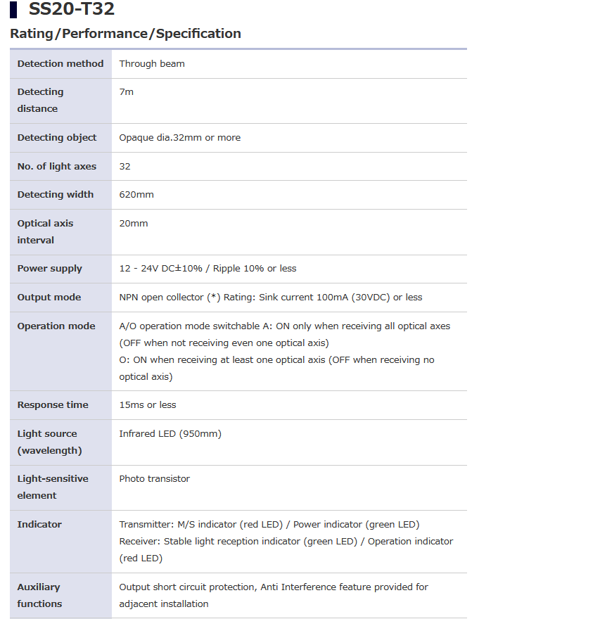 TAKEX竹中 SS20-T32 SS20 Series 超薄型光幕传感器 电话:0755-84670052 0755-83317701 手机/微信:13682357549 13246646513 QQ:672776553 564600083 1903656788 Email:672776553@qq.com 564600083@qq.com