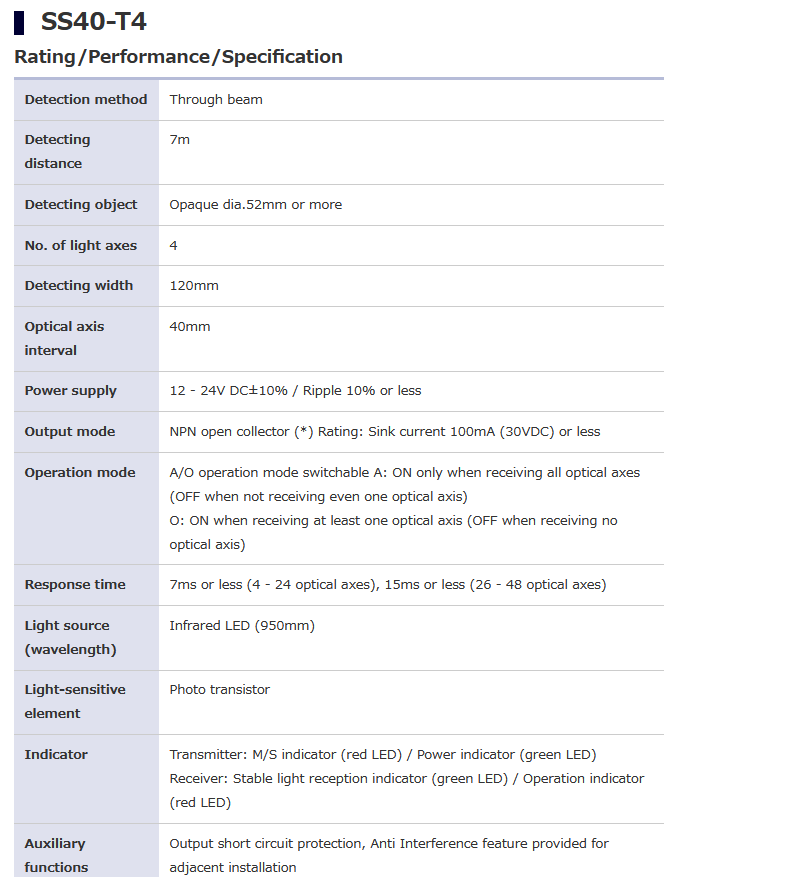 TAKEX竹中 SS40-T4 SS40 Series 超薄型光幕传感器 电话:0755-84670052 0755-83317701 手机/微信:13682357549 13246646513 QQ:672776553 564600083 1903656788 Email:672776553@qq.com 564600083@qq.com