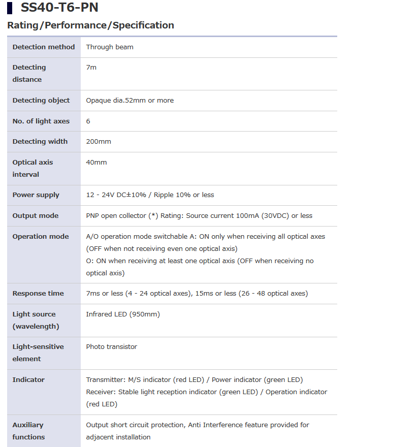 TAKEX竹中 SS40-T6-PN SS40 Series 超薄型光幕传感器 电话:0755-84670052 0755-83317701 手机/微信:13682357549 13246646513 QQ:672776553 564600083 1903656788 Email:672776553@qq.com 564600083@qq.com