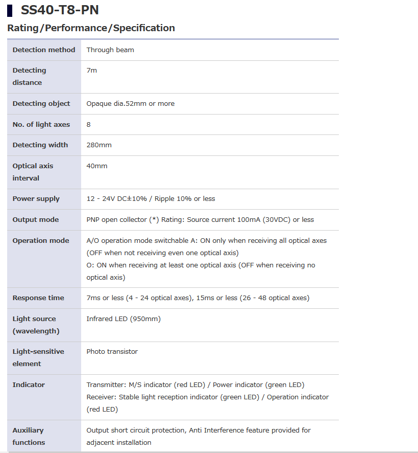 TAKEX竹中 SS40-T8-PN SS40 Series 超薄型光幕传感器 电话:0755-84670052 0755-83317701 手机/微信:13682357549 13246646513 QQ:672776553 564600083 1903656788 Email:672776553@qq.com 564600083@qq.com